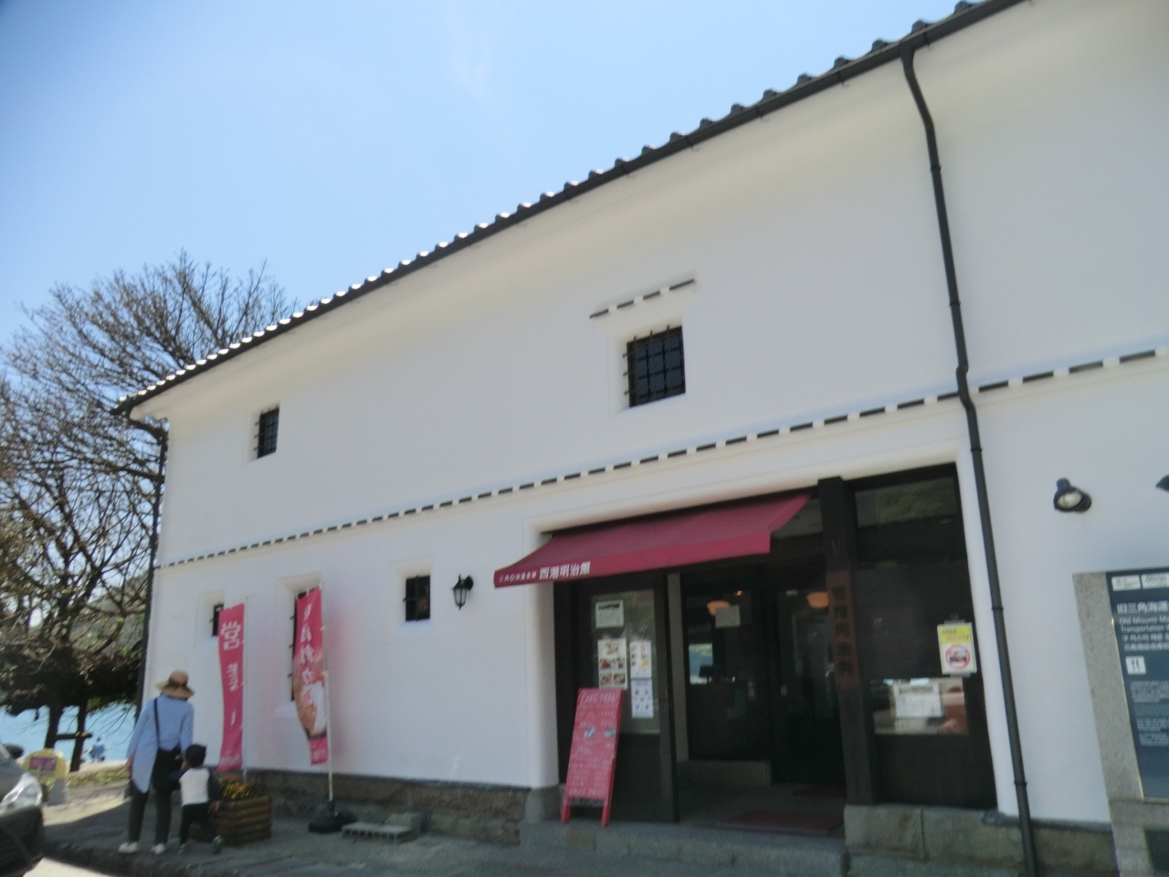 昔は海運業の倉庫として使用されていたようですが、今はリノベーションされて、レストランに変わっています。中に入ると広くて大きな空間があって天井も高く、木造の梁がしっかりと建物を支えていて、いかにも倉庫です。1887年(明治20年)に建てられた土蔵造りの2階建てです。大きさは桁行25m、梁間7mとのことです。
