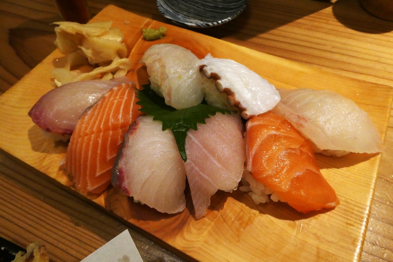 数日前に行った居酒屋での刺身。おしゃれに盛り付けはしてあるものの、切り身が小さい上に高かった。ここではご飯も食べたいと思ったので握り寿司を頼みましたが、食べ応えるのある大きさ。別の席の方が刺身を頼んでいたのでちょいと見ていると「刺身はそうでなくっちゃ」の大きさ。ココは信用できる、と勝手も思ってしまった。