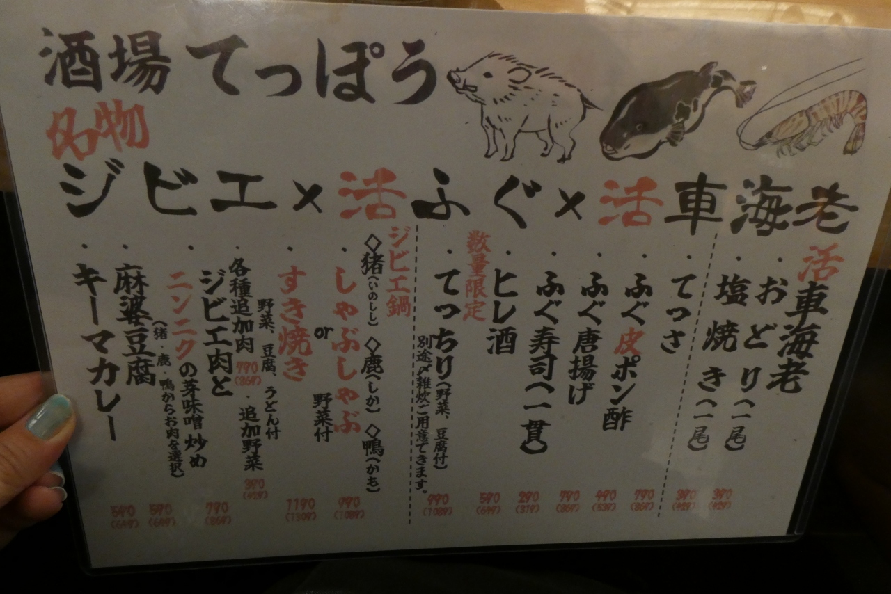 天王寺MIOの4階にあるふぐやジビエ料理のある居酒屋。どこで食べるか探していて見つけ、入ってみることに。