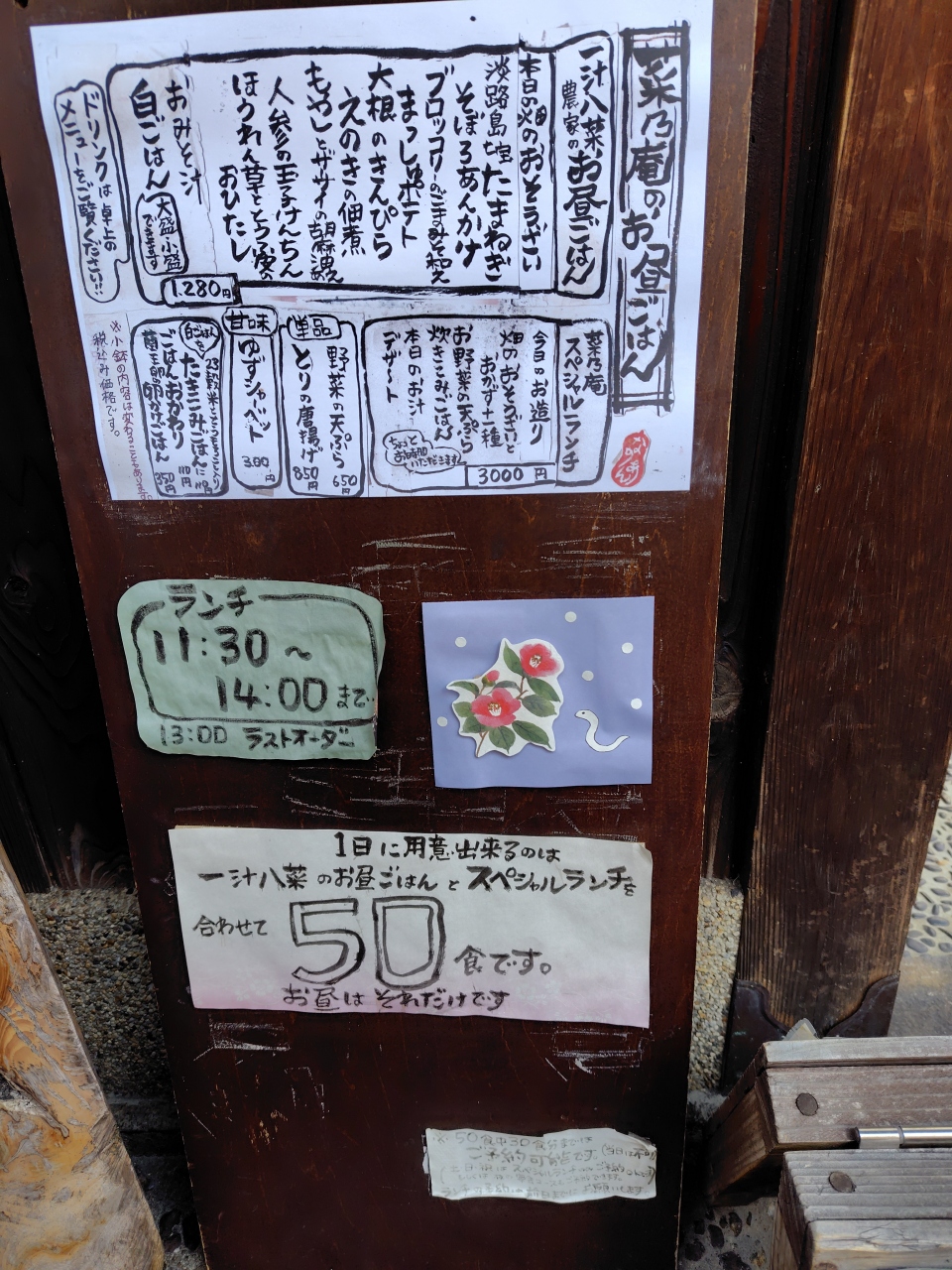 ランチは一汁八菜のお昼ごはんとスペシャルランチのみで、合わせて50食です。