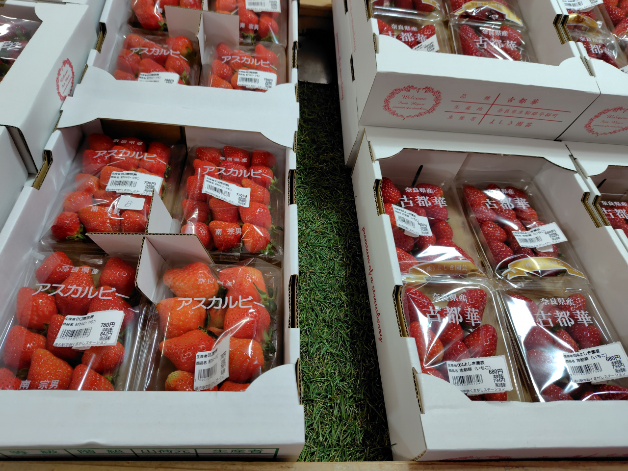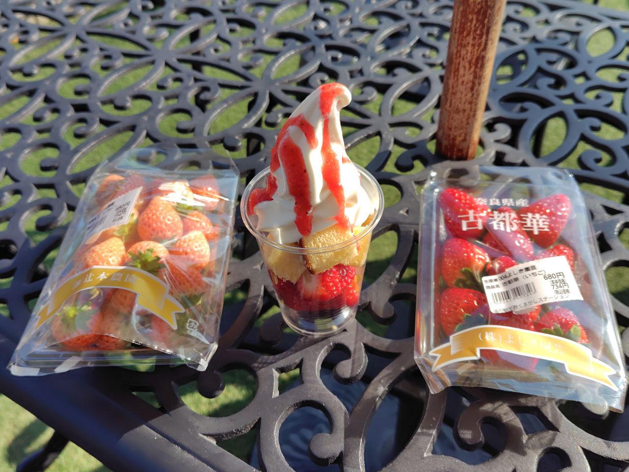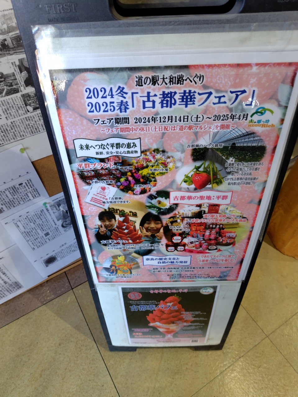 古都華の聖地、平群にある道の駅。道の駅はさほど大きい施設ではないですが、イチゴのシーズンになると古都華はじめ奈良ブランドのイチゴが並びます。