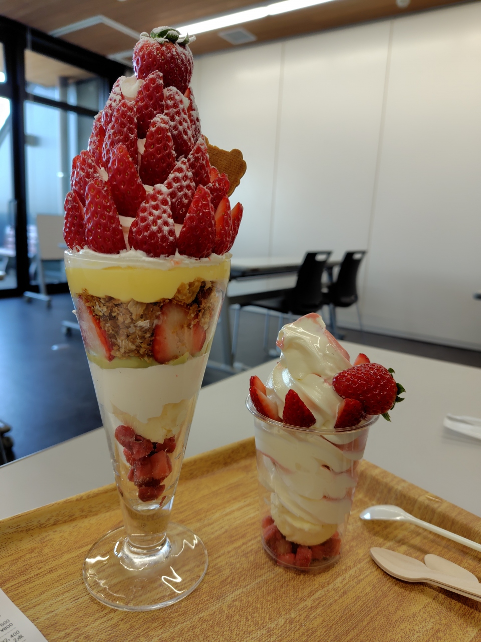 道の駅へぐりのカフェでのパフェは予約制ですが、こちらは通常に買うことが出来ます。ただしいちごパフェ極は14時からの販売となります。