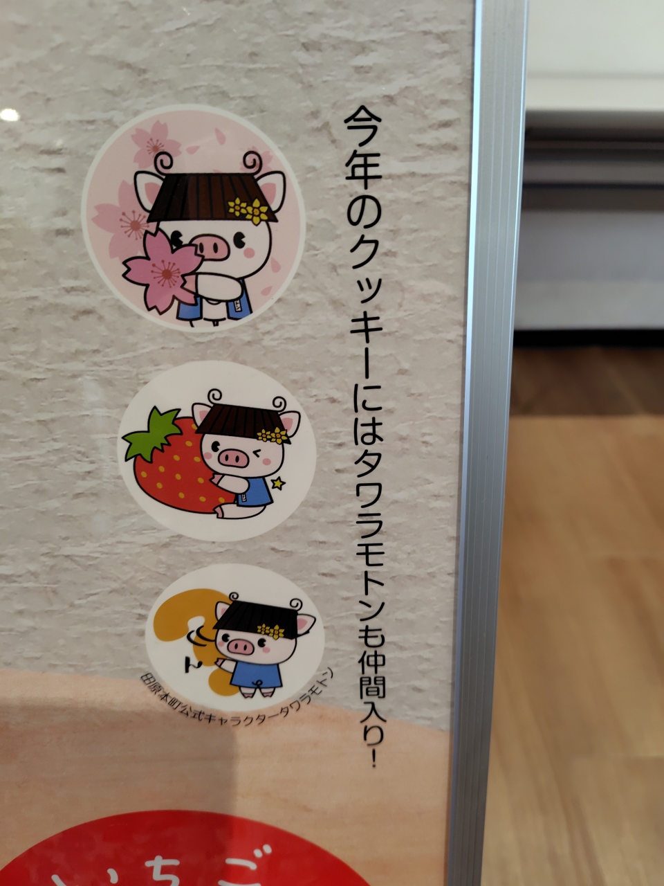 奈良といえば、たいてい鹿型のクッキーが添えられているのですが、こちらは田原本の公式キャラクターのタワラモトンのクッキーが添えられています。