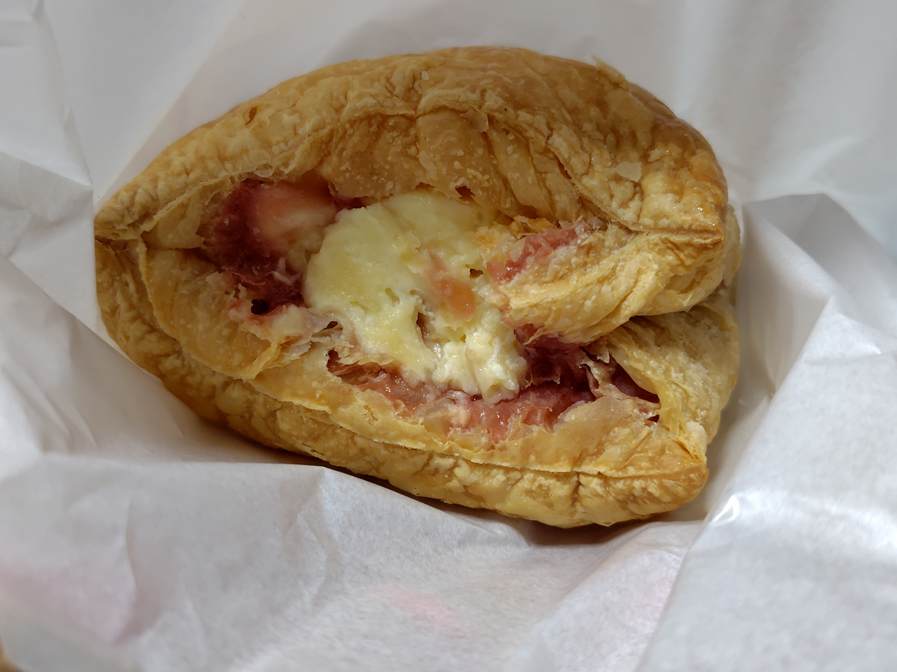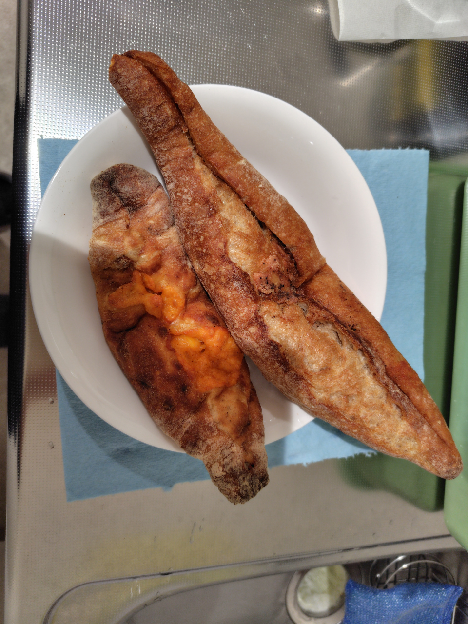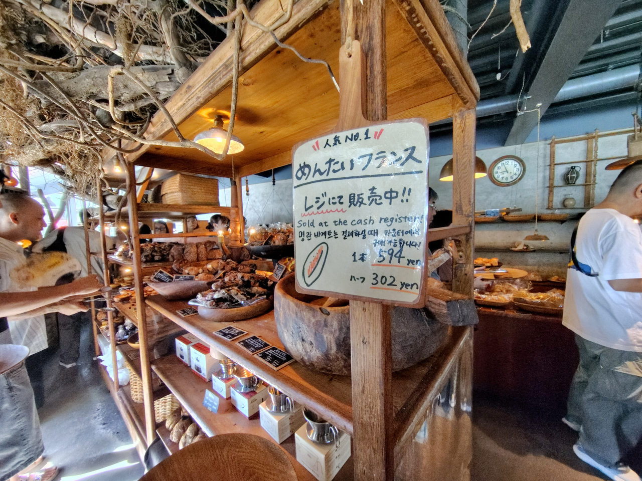 こちらの名物のめんたいフランスはレジにて伝えます。値段は高いですが1本だと30cmはあろうかという大きさです。次の日にいただいたのですが1日経っても美味しかったので、当日だともっと美味しかったのだろうと思います。