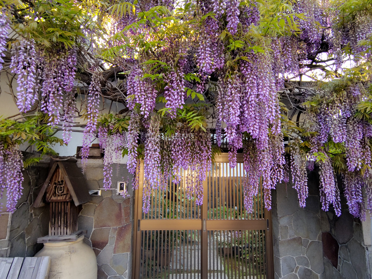 熊野街道にある、熊野街道信達宿 梶本家の野田藤。一般のお宅の藤棚を一般公開されております。保存協力金100円。