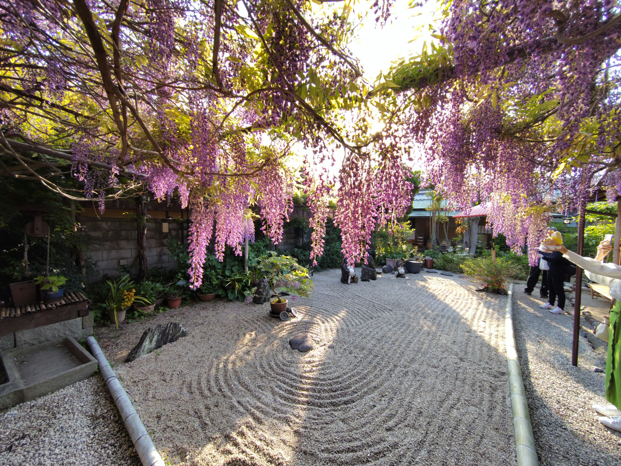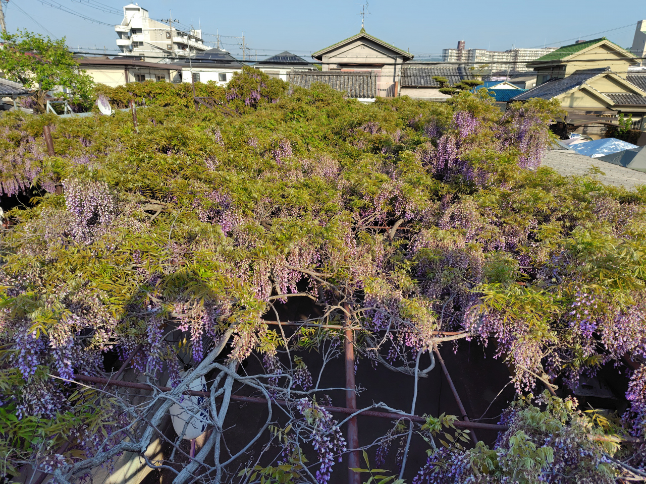 JR和泉砂川駅から徒歩10分ほどだそうですが、藤まつり期間は長慶寺の駐車場を臨時駐車場となっております。こちらからも徒歩10分ほど。