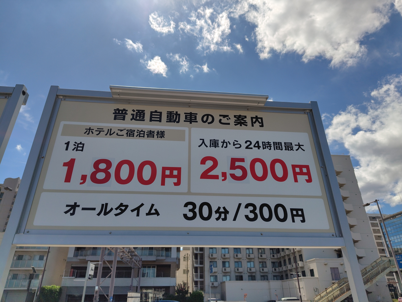 ホテルの駐車場は26号線から入ることが出来ますが、専用の駐車場ではなくコインパーキングなのでホテル利用者は1泊1800円。もし出入りしたいのであれば通常のコインパーキングとして利用することとなります。