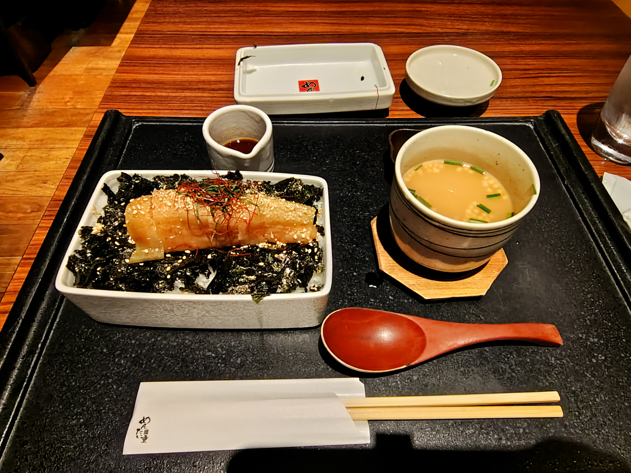 めんたい吸いは器の底に蒸したての豆腐が鎮座し、焼いた明太子がほろほろと表面で浮いています。こちらも特筆する感じもなく。