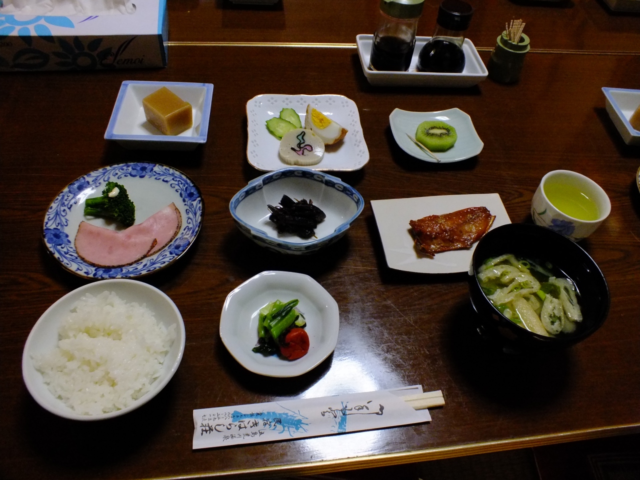朝食は8:20~にしていたため、食事部屋に行くと誰もいません。ある意味ゆっくり食べることが出来ました。量は少量で種類が多めに出ました。9時くらいまでのようなんですが、9時すぎに遠まわしにまた終わりを告げに来られました。