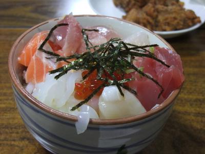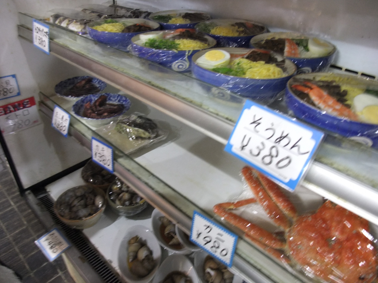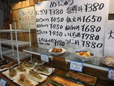 大衆食堂で、メインの海鮮ものを丼かにぎりの中から選びます。と、これが380円!丼は少し小さめですが、ご飯は思ったよりも入ってますし、さしみも380円という値段からしては多めに入っているかと思われます。
