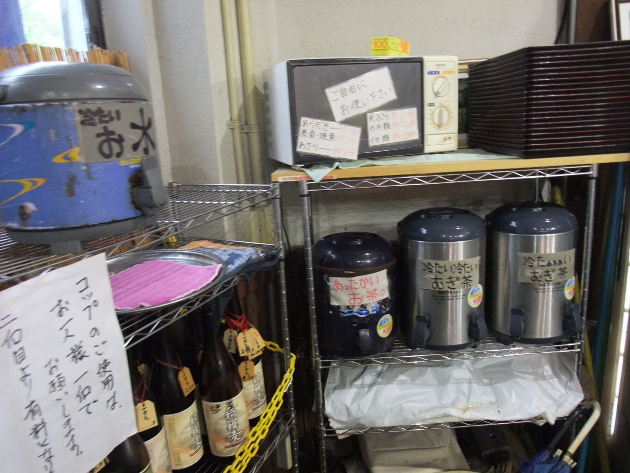 縁側にお水が入った瓶が置いてあるのですが、おかわりはセルフで注ぎに行きます。