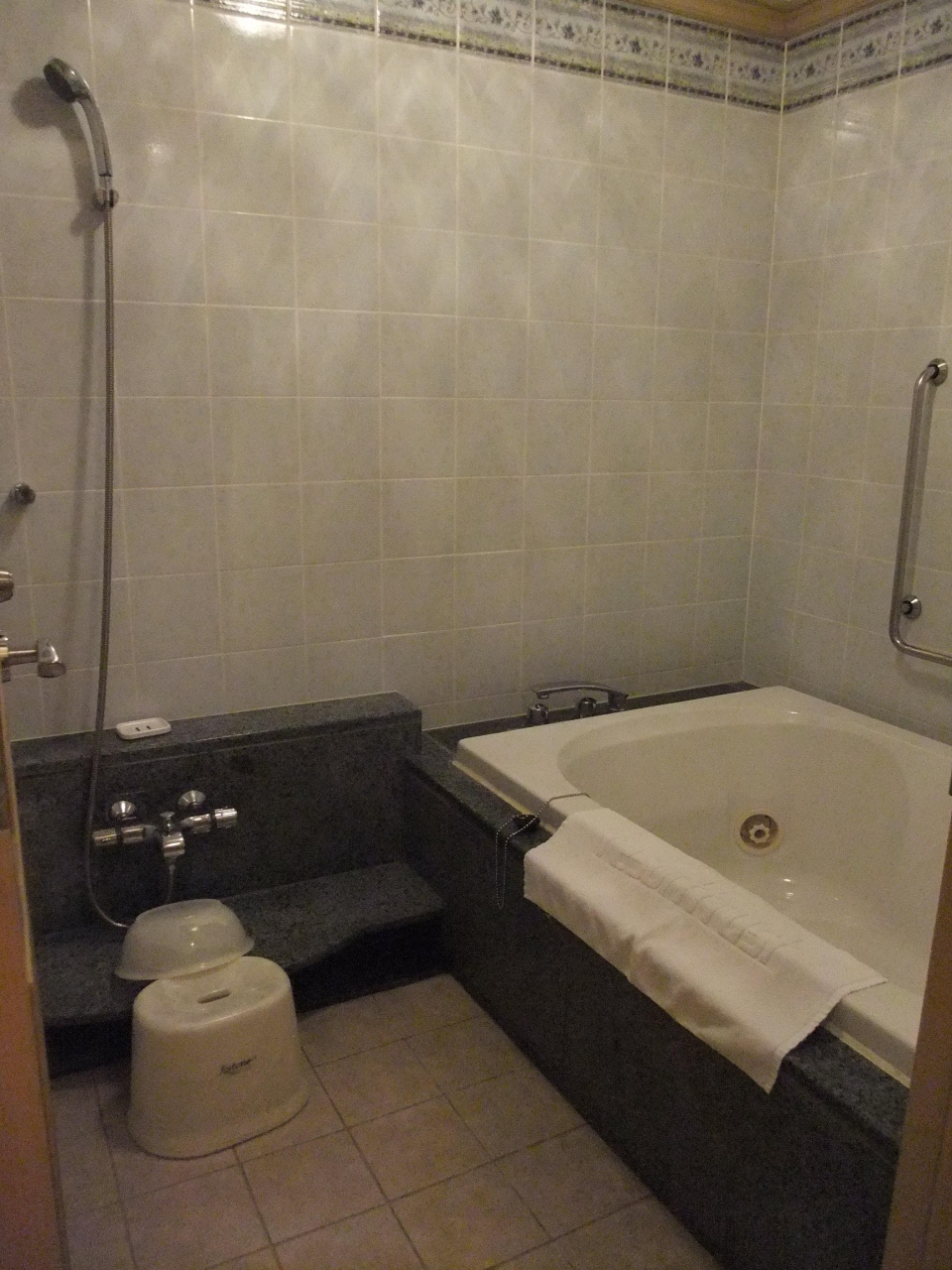 お風呂は温泉なのですが、シャワーがなく、カランもお湯とお水に分かれているため、ちょいと不便かと思います。お風呂は22時までで、その後はお湯を抜くということなので、朝に入りたい方はその旨を伝えると、お湯ははったままにしてもらえます。