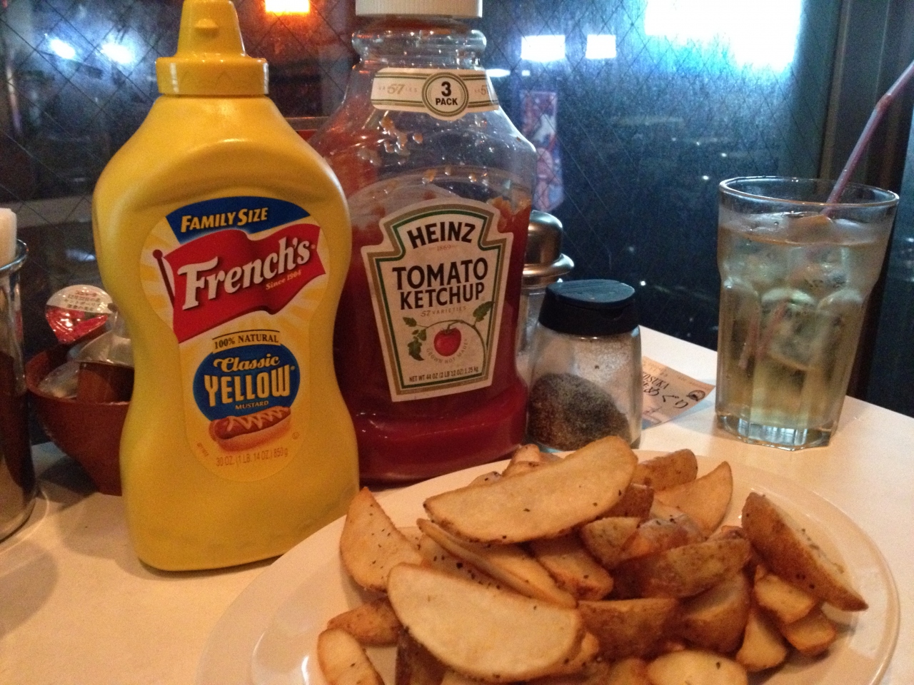 フレンチフライは塩とブラックペッパーがかかっています。アメリカンナイズされているお店ですから、ケッチャプ、マスタードはアメリカンサイズでした。勿論、ポテトも大きいです。