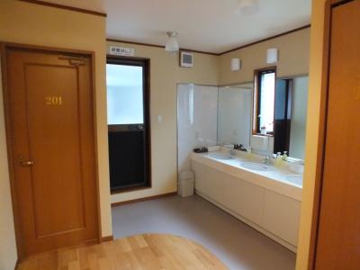 トイレ・洗面は共同ですが洗面は4つあり(横に長いので、もしかしたら向こう側にもあるかもしれません)、トイレも男女とも2つあります。その他にキッチンもありました。