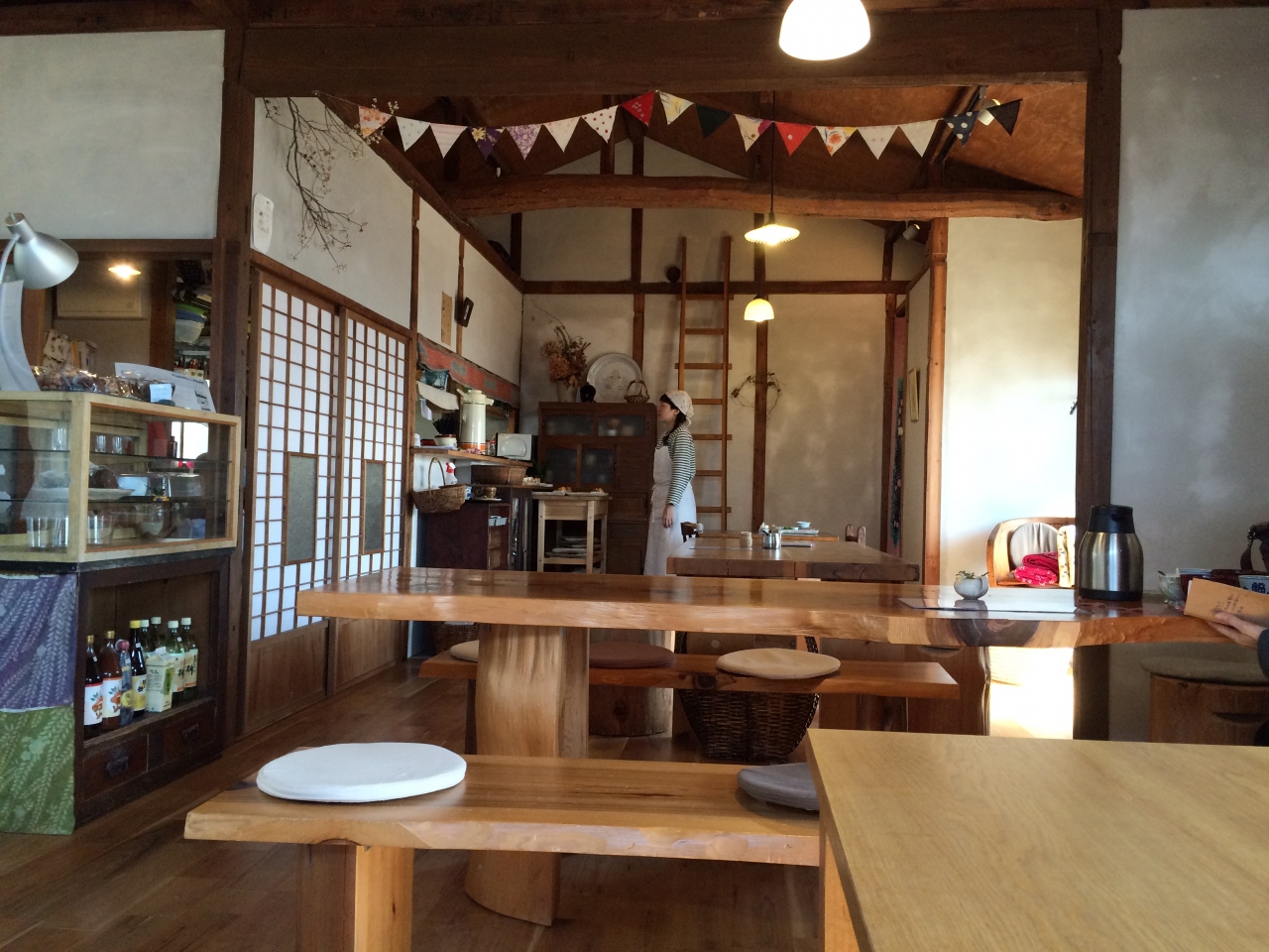 勿論中も素晴らしい。テーブルはけやき1枚もん。トイレは階段を上がって行くのですが、