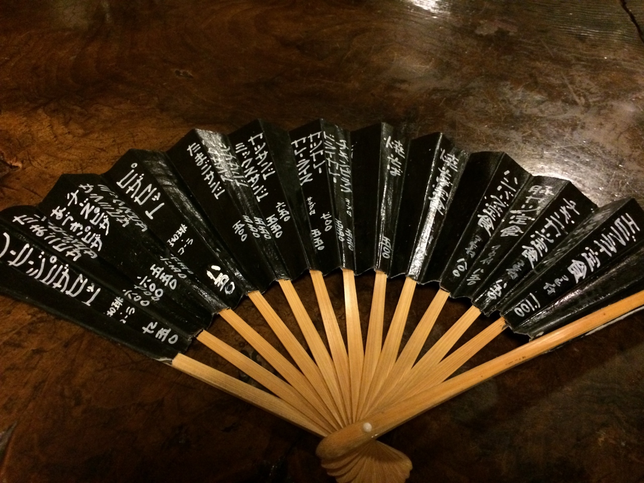 メニューは扇子に書いているセンスが、この建物を作り出している