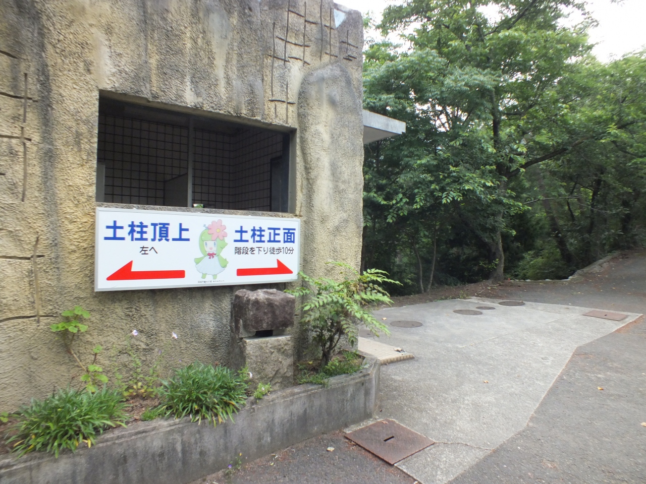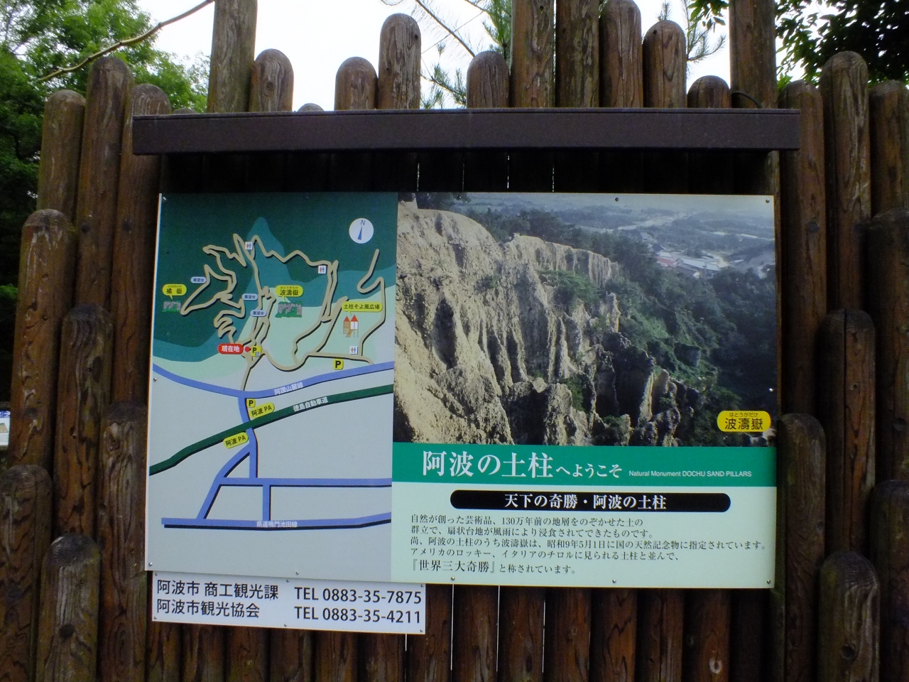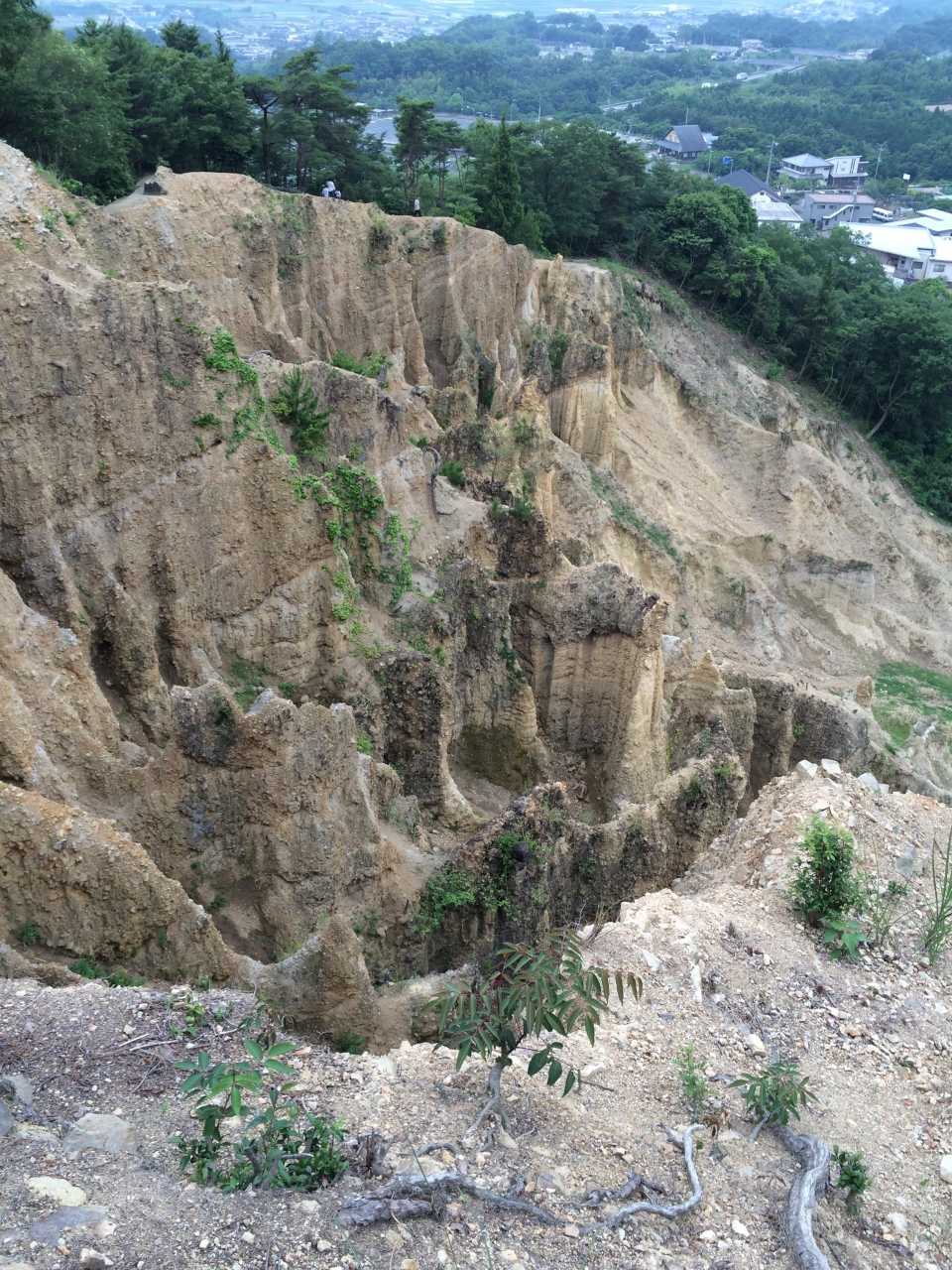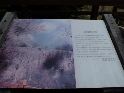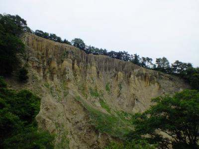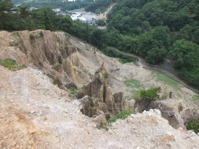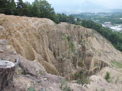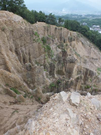 土柱を真正面から望める展望所に到着。日本のグランドキャニオンを呼ばれていた、雨風の浸食で作り上げられた岩の壁です。