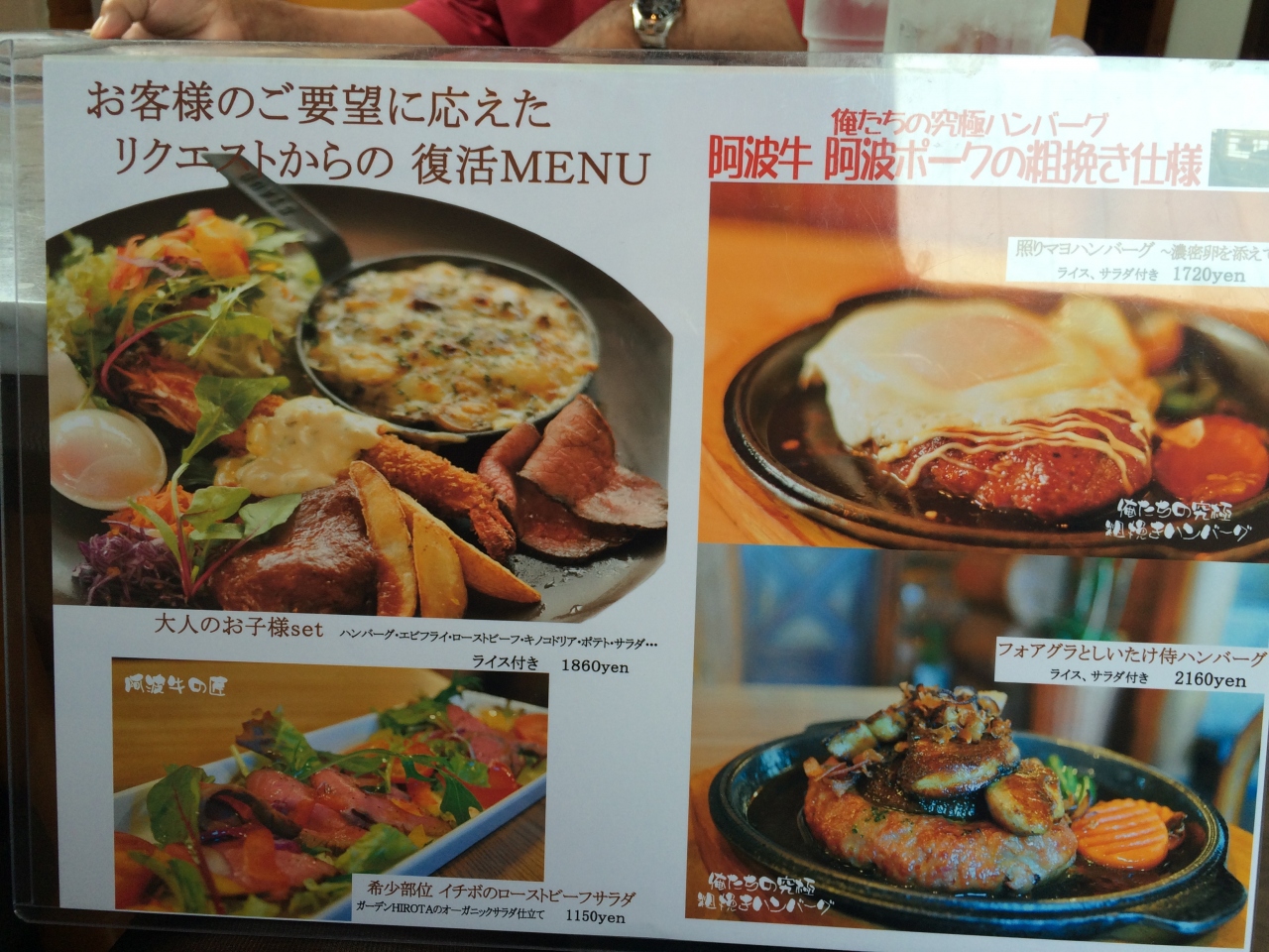 すべて阿波牛を使っているかは不明ですが、阿波牛を使ったハンバーグがいただけるレストランです。
