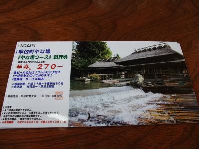 地元ではないため商工会には買いには行けないので電話での購入。4370円のやな場コースが100円安い4270円になり、生ビールかソフトドリンク1杯がついております。