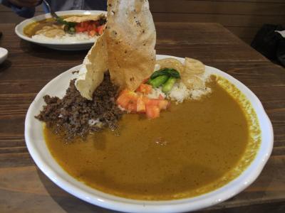 カレーはそんなに辛くはなかったと思いますが美味しいです。大きな平皿なので、最後は少し食べにくいので、もう少しスプーンですくいやすい感じの器のほうがいいかもしれない。