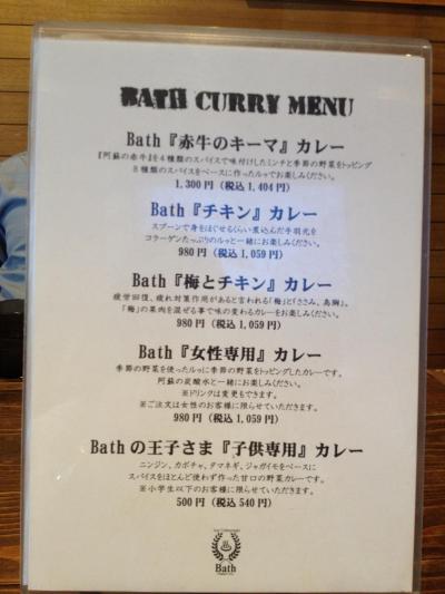 他を調べていなかったので食べログ調べ、近くの別の店へ行ってみたところ、どーやら閉店している模様。暑いしおなかも空いているしと、その店の2,3軒隣にあるカレー屋で食べることにしました。それがBathです。