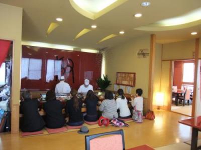 ただ、調理台がカウンターの前にあり、座敷からは見えないため、