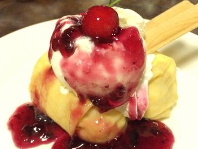 デザートはアイスなのですが、なんでしょー。黒蜜かなにかをかけてありました。
