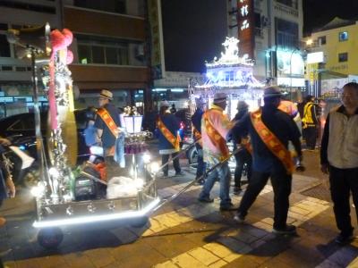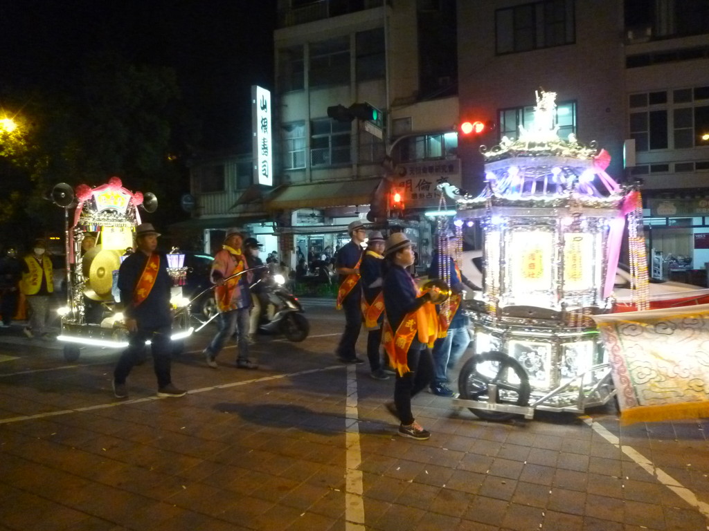 お店の前の道の民族路には、山車と共に大勢の人が目の前を通り、