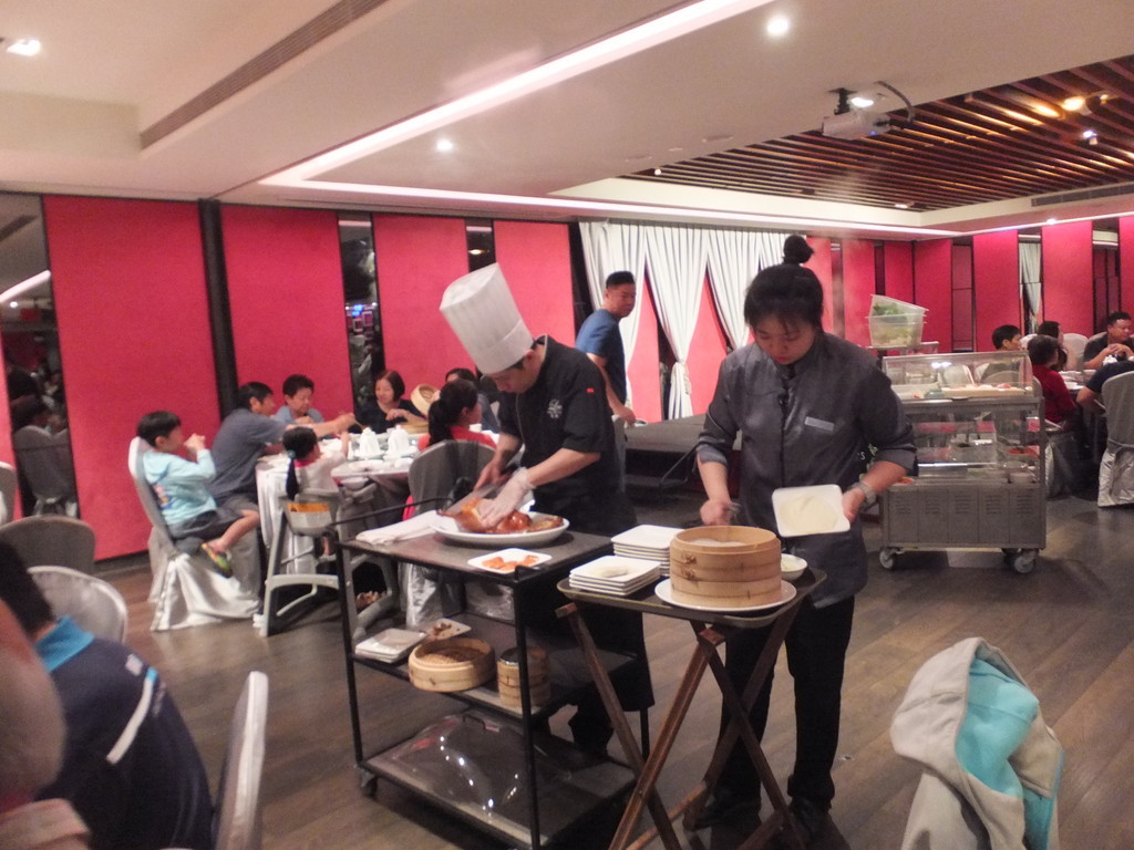 高級店では、北京ダック一匹を注文すると、実演をしてくれます。