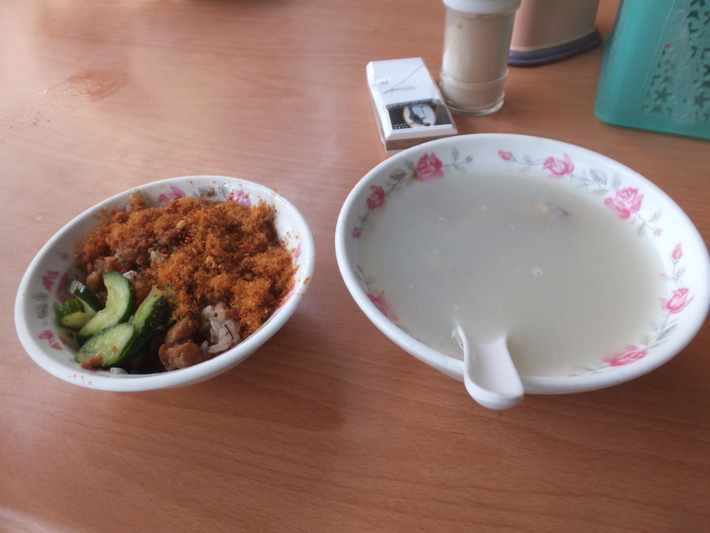 妻と友人と香味海産粥を行きました。普通の原味海産粥か味噌海産粥をどちらを選ぶか悩みましたが、珍しいので味噌にしました。妻が注文した原味海産粥を食べてみましたが、原味海産粥のほうが美味しいかった。