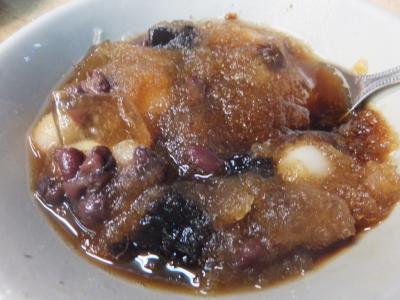 ここのかき氷は、5種類のトッピングが選べるので私は小豆、寒天を中心に選びました。