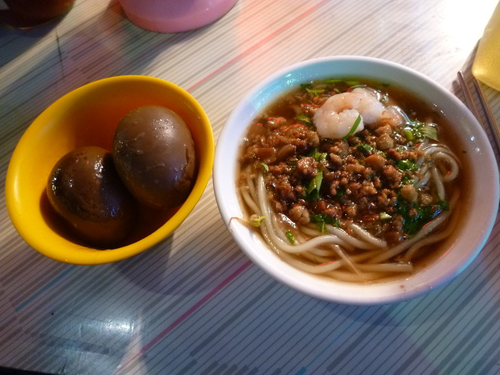 友人から豚毛のブラシを頼まれたので、妻と六合夜市に買いに来ました。ついでに、軽く食事もしようと思います。六合夜市に着くと、土曜日のせいか、観光客で混雑していました。普段はどうなのでしょうか? 大陸からの団体客が押し寄せた時ほどではないですが、観光客の多さに少々驚きました。大陸からの観光客が大半で、残りがアジア、欧米、日本人からでした。聞くに堪えない大声で話す人や人を押しのける迷惑者も見当たらず、随分快適に散策できるようになりました。ガイドさんが、日本人団体客に説明しているのを、聞きながら見て回るのも楽しいものです。目的のブラシを見つけたので、購入し、「度小月」の提灯を掲げているお店に入り、担仔麺と煮卵を注文しました。美味しかったのですが、器の小さくなったこと。紫色した美味しそうなトウモロコシを見つけたの早速購入、食べながら散歩を続けました。一通り、見物したので、ジュースを買って、義母の家に向かいました。