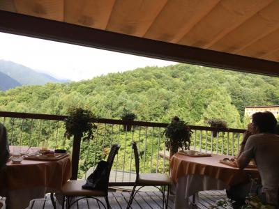 穂高駅から1時間おきに送迎バスが出ています。駅からはバスで15分くらいで、けっこう山の上の方にありました。お部屋は綺麗で広くキッチンも付いていました。セキュリティーボックスはないので、フロントに預けるようになっています。朝、夕食はバイキングを頂きました。種類もけっこう多くて良かったです。朝食はテラス席だったので、景色も良かったです。お風呂は男女日替わりだったので夜と朝で両方入りました!両方ともそんなに広くはないですが、良かったです。