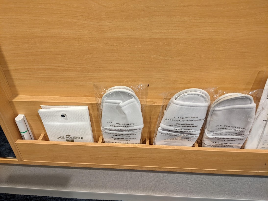 スリッパは使い捨てタイプ、パジャマは2ピースタイプで良かったです。