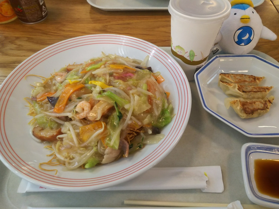 単品もありましたが、朝食も食べていなかったので、餃子の付いた皿うどんとのセットにしました。