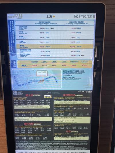 浦東空港・虹橋空港のどちらもホテル間の無料シャトルあり。ディズニー迄の往復シャトルバスや外灘迄のシャトルもあります。朝早いディズニー行きや空港、外灘などのシャトルバスは予約必須。それ以外は予約なしでも普通に乗れる感じでした。