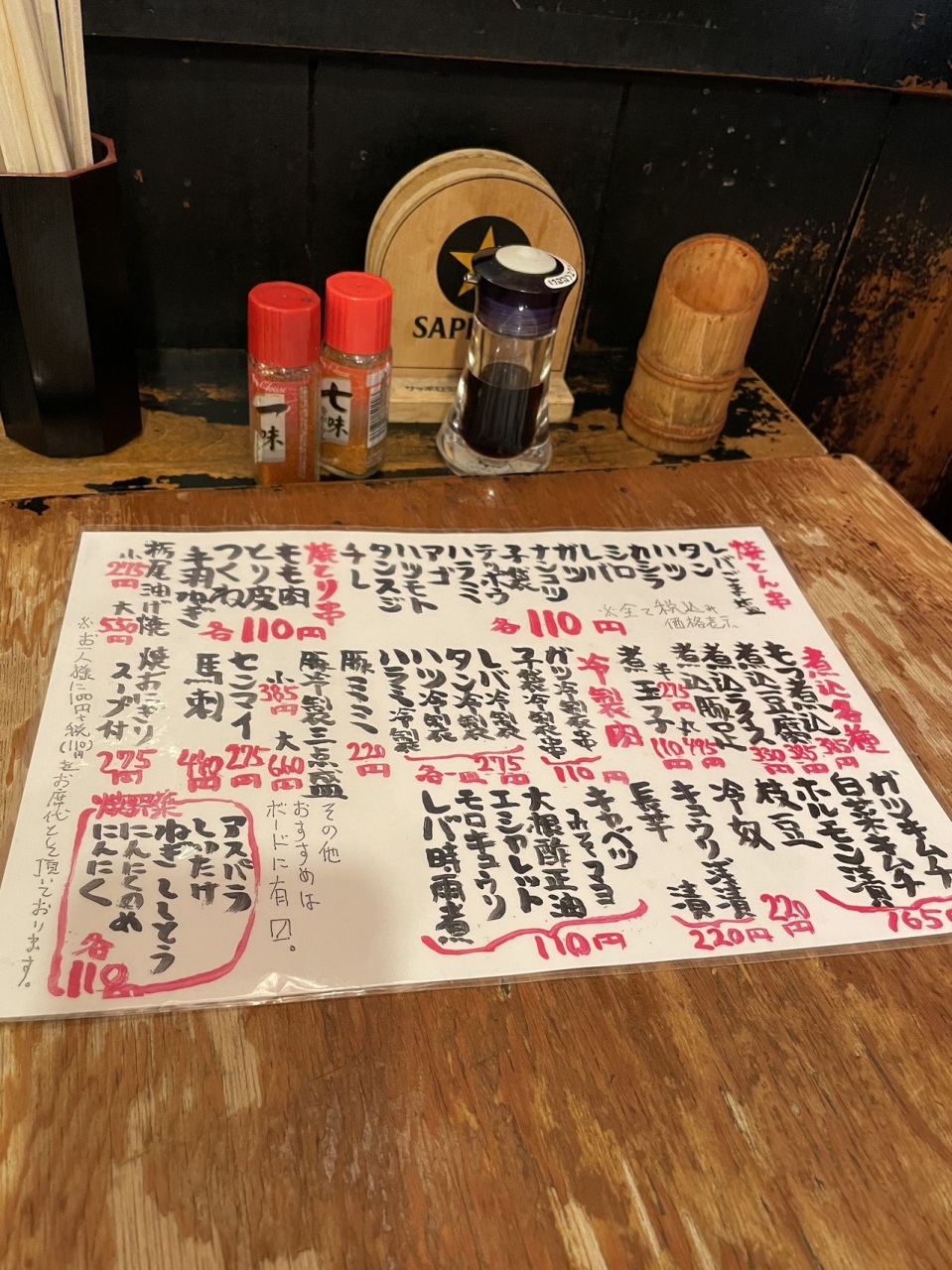 焼き物はほぼ1本¥110。4月から¥10値上げのようです。