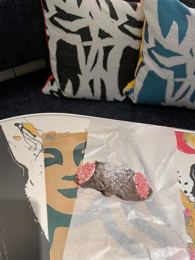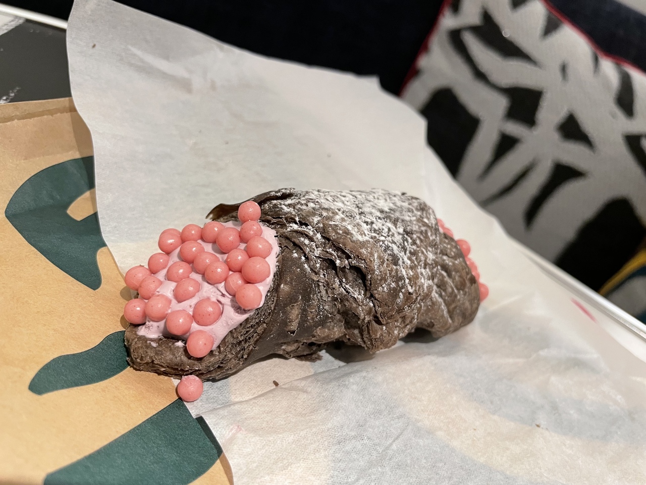 銀座シックス6階大きくお洒落でステキな蔦屋書店とコラボのスターバックスリザーブ店。日本のリザーブ1号店とのこと。とても落ち着いたお洒落空間でした。同じ階のイータリーで食事をした後だったのでドリンクはオーダーせず、長女がどこにも売ってないのに1個だけあった!買って!とおねだりしてきた見た目が気持ち悪いと話題のクリームパイブルーベリー&ココアを購入。