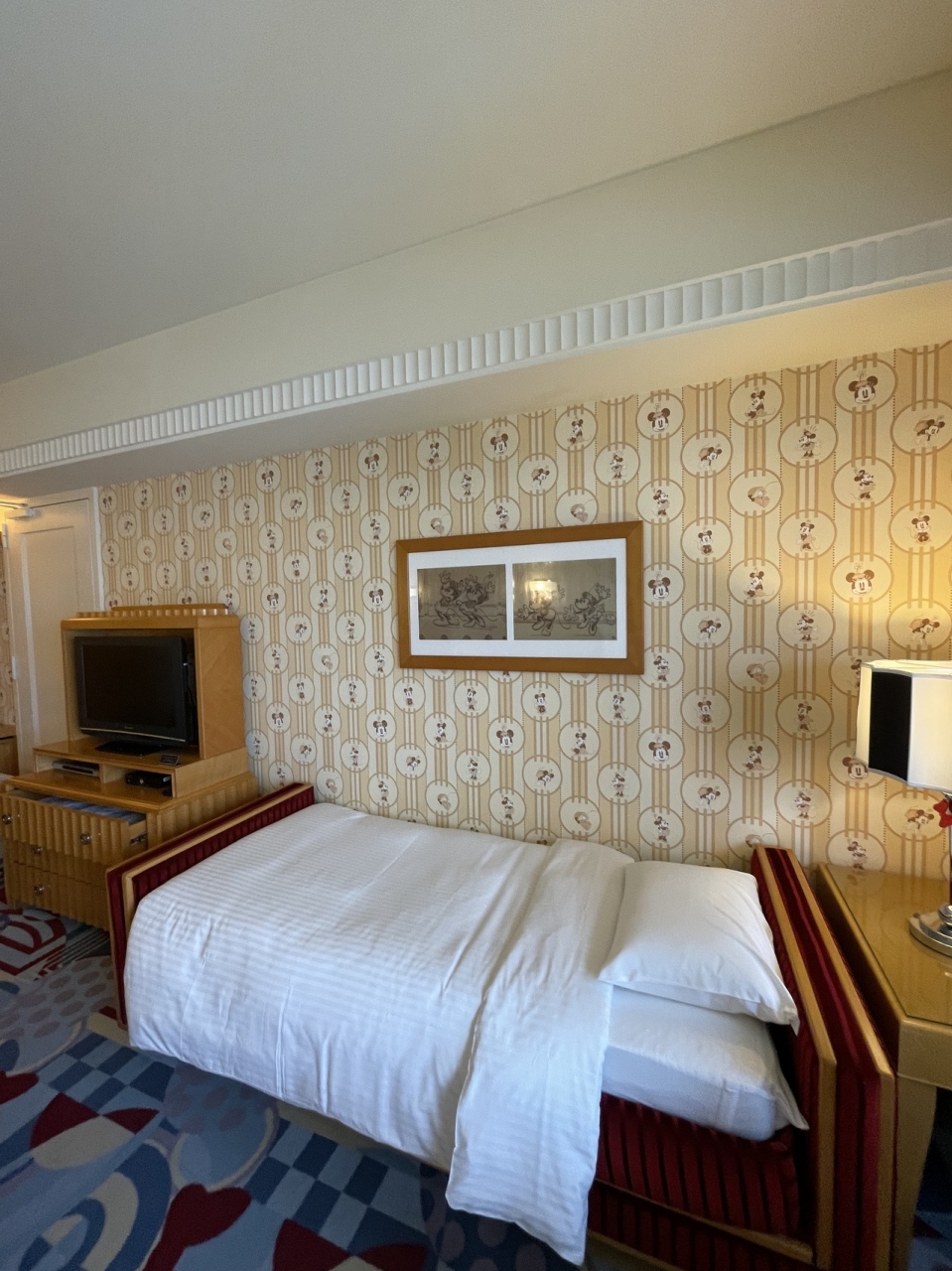 アンバサダーフロア(6階)ミニーマウスルームに宿泊。主人が14時から宿泊者専用ラウンジでPC仕事をしていると14時30半頃にお部屋に案内してもらえたとのこと。