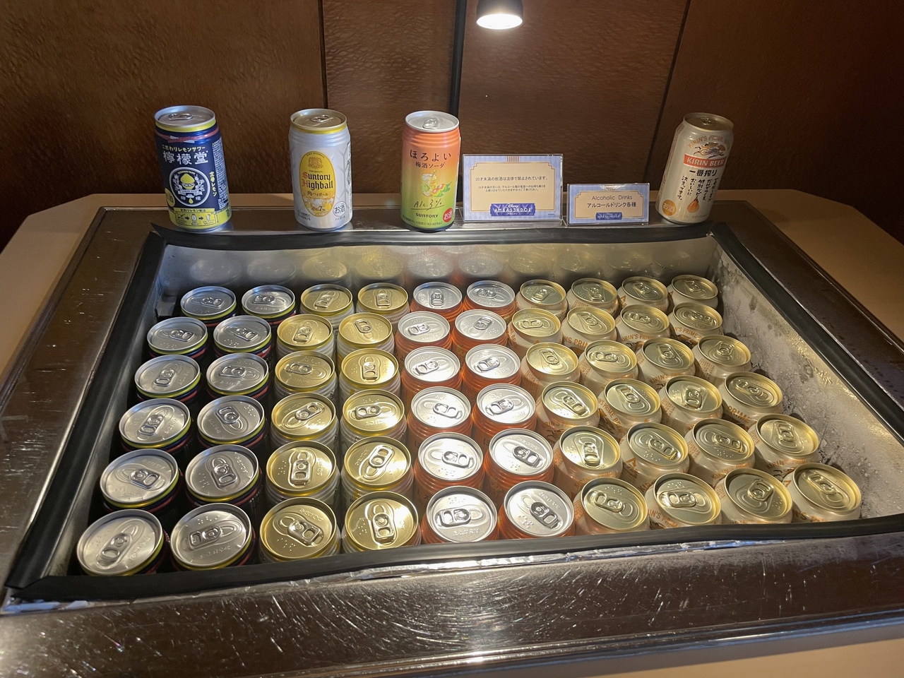 ソフトドリンクやスナック、17時~22時はカクテルタイムになりワインや缶ビール、ほろ酔い、檸檬堂やベジタブルスナック・チーズ等メニューが少し変わります。