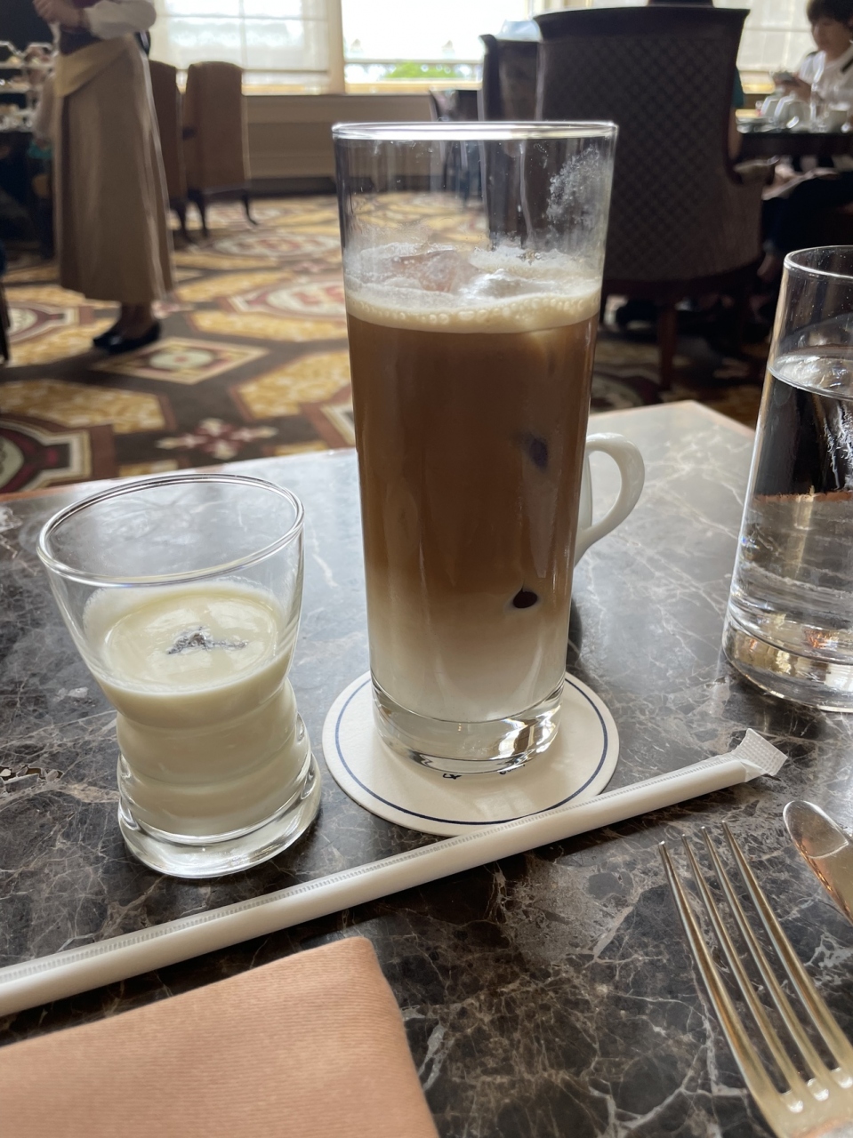 主人はアイスカフェラテもオーダーしましたが、オーダー時に「大抵の方がかき氷を召し上がると飲み物は入らないですがよろしいですか?」と聞かれ、それでも大丈夫とオーダー。