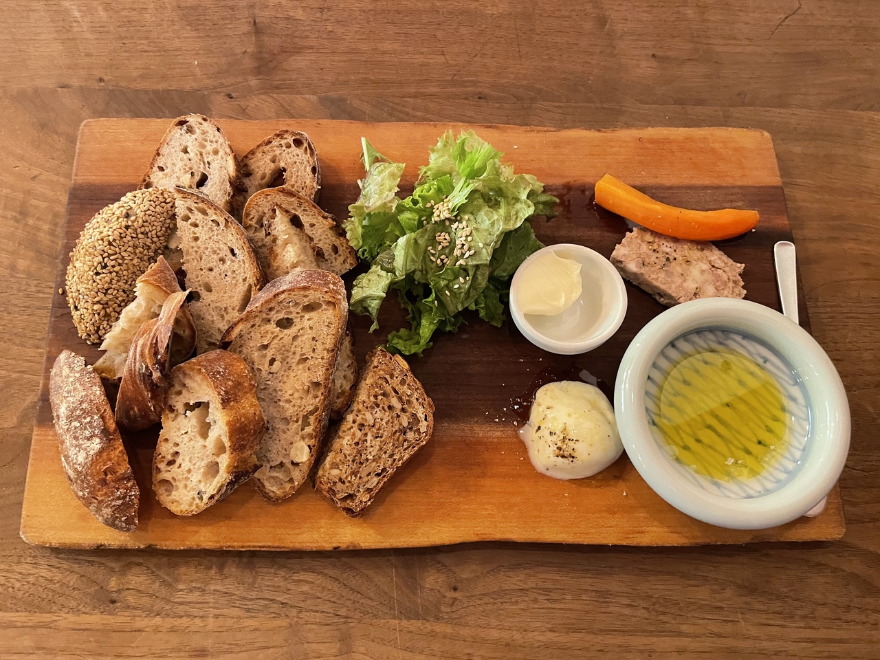 私はスペシャルパンセット。6~8種類のパンにサラダやパテorハムが付いてきます。