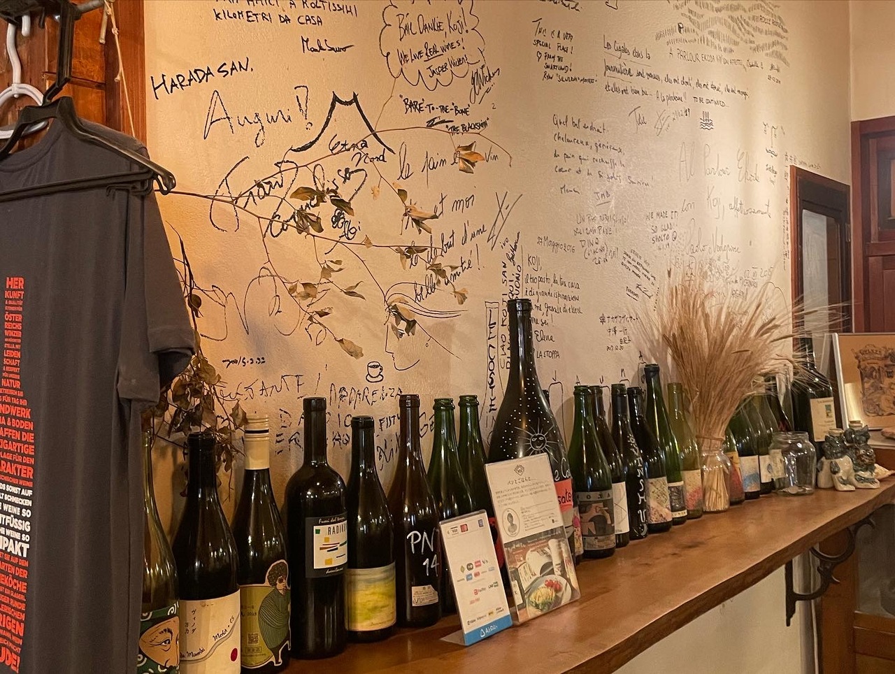 古民家のような建物。引き戸を開くとハード系のパンやバターにチーズのショーケースがあります。