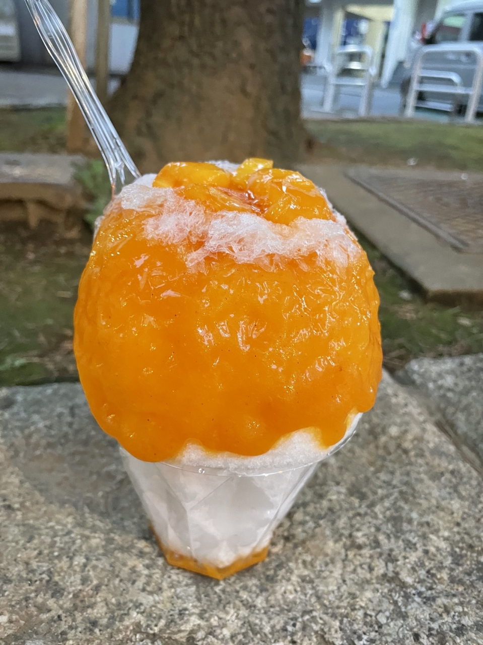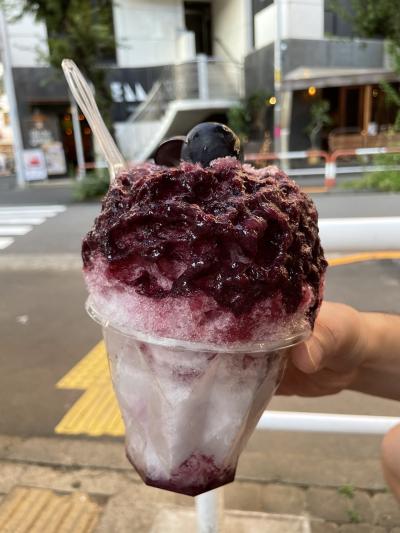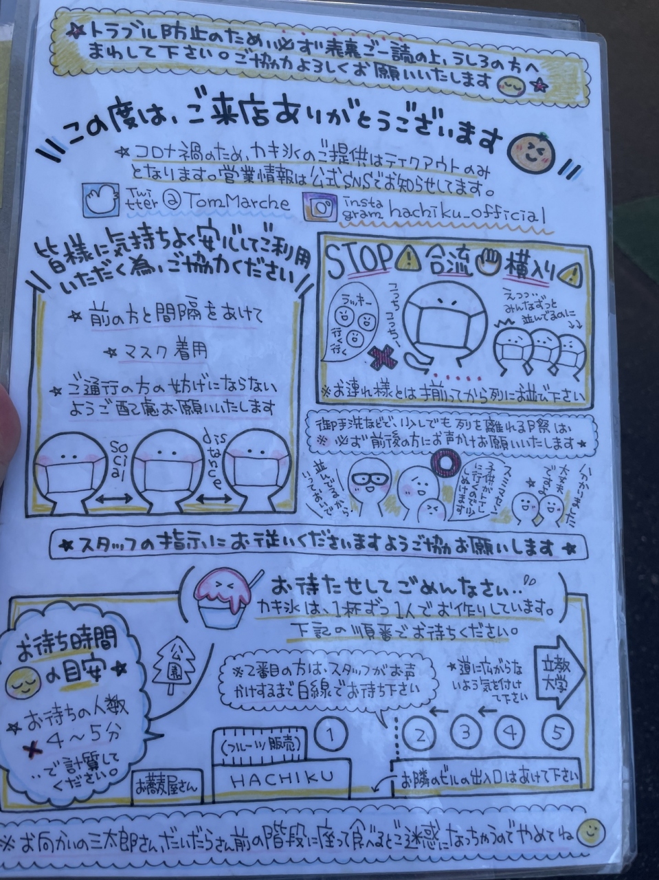 日曜14時過ぎにかき氷やります案内を見て15時半に到着すると長蛇の列。15時30分に並び始め、食べられたのは17時過ぎでした。