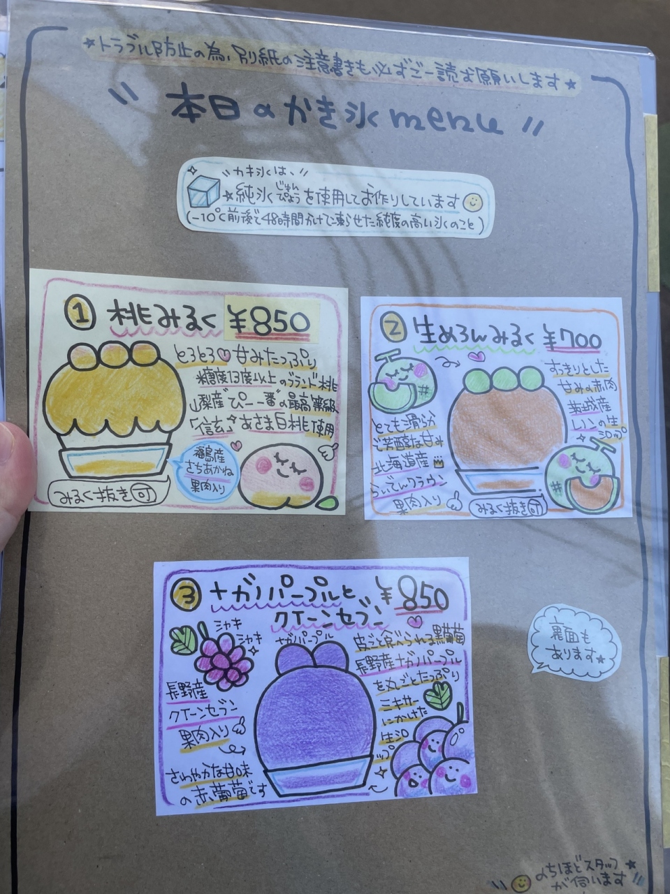 特にかき氷はゲリラ的で「今からかき氷やります」と、本当に直前に案内があります。(混雑防止のためとのこと)