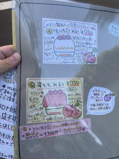 果物販売は13時~ほぼ毎日行っていますが、コロナの影響で店内飲食無しのテイクアウトフレッシュジュースやかき氷は当日公式SNSでお知らせがある。