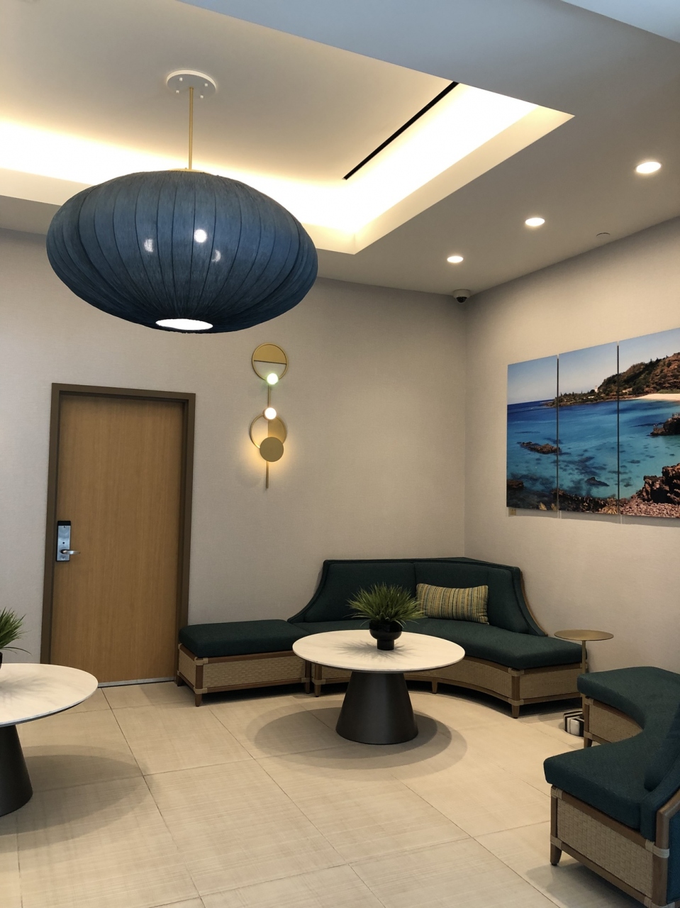 予約は主人に任せ、眺望や設備など期待していなかった。AM11時30分到着だが部屋に入らせてもらえ、フロントの男性3人ともとても親切だった。フロントロビーは青を基調としており、爽やかな印象。