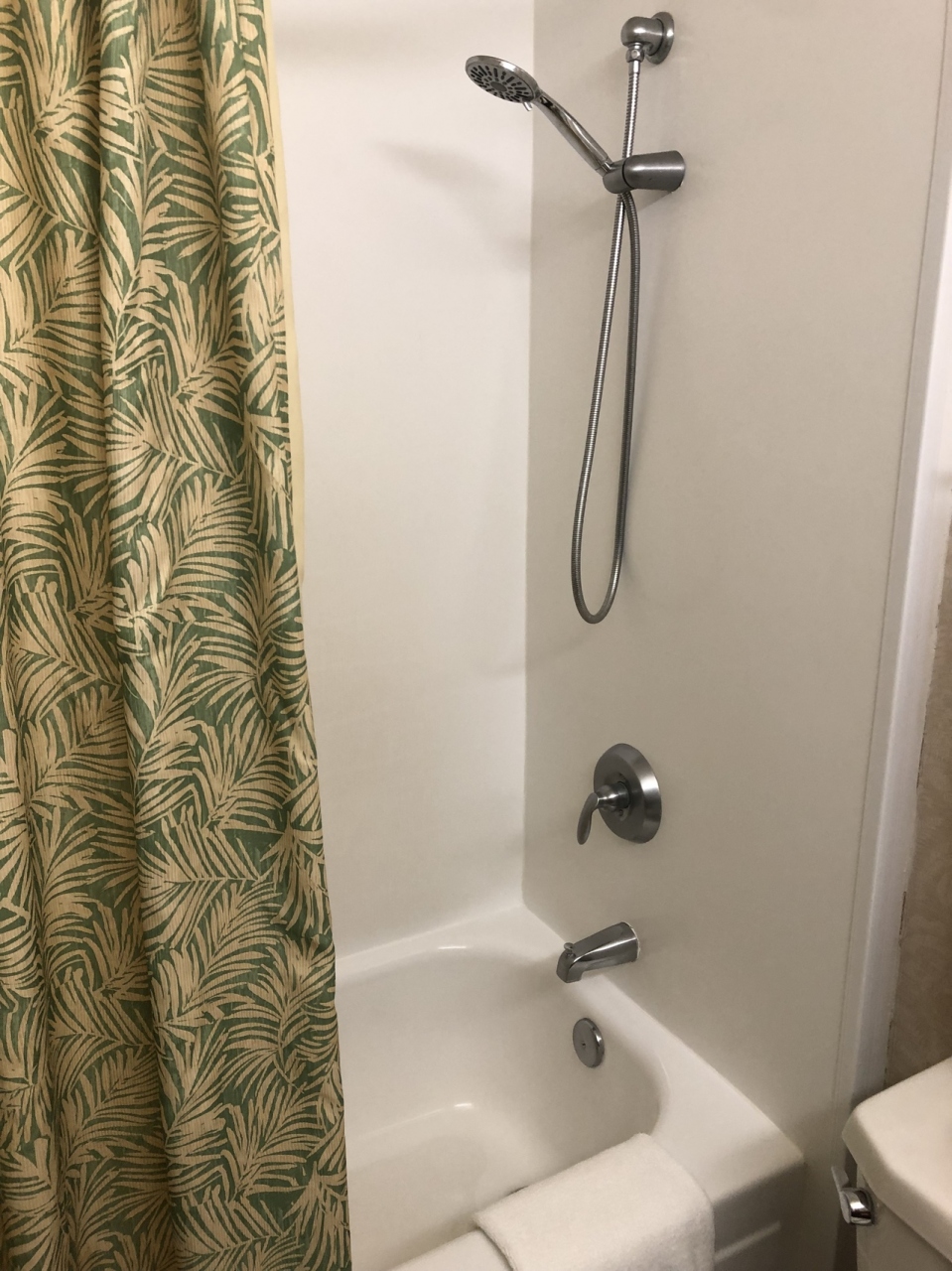 そして、なんと部屋から海が見えました!お風呂はシャワーだけだと思っていたら、湯船&ハンドシャワーありでした。