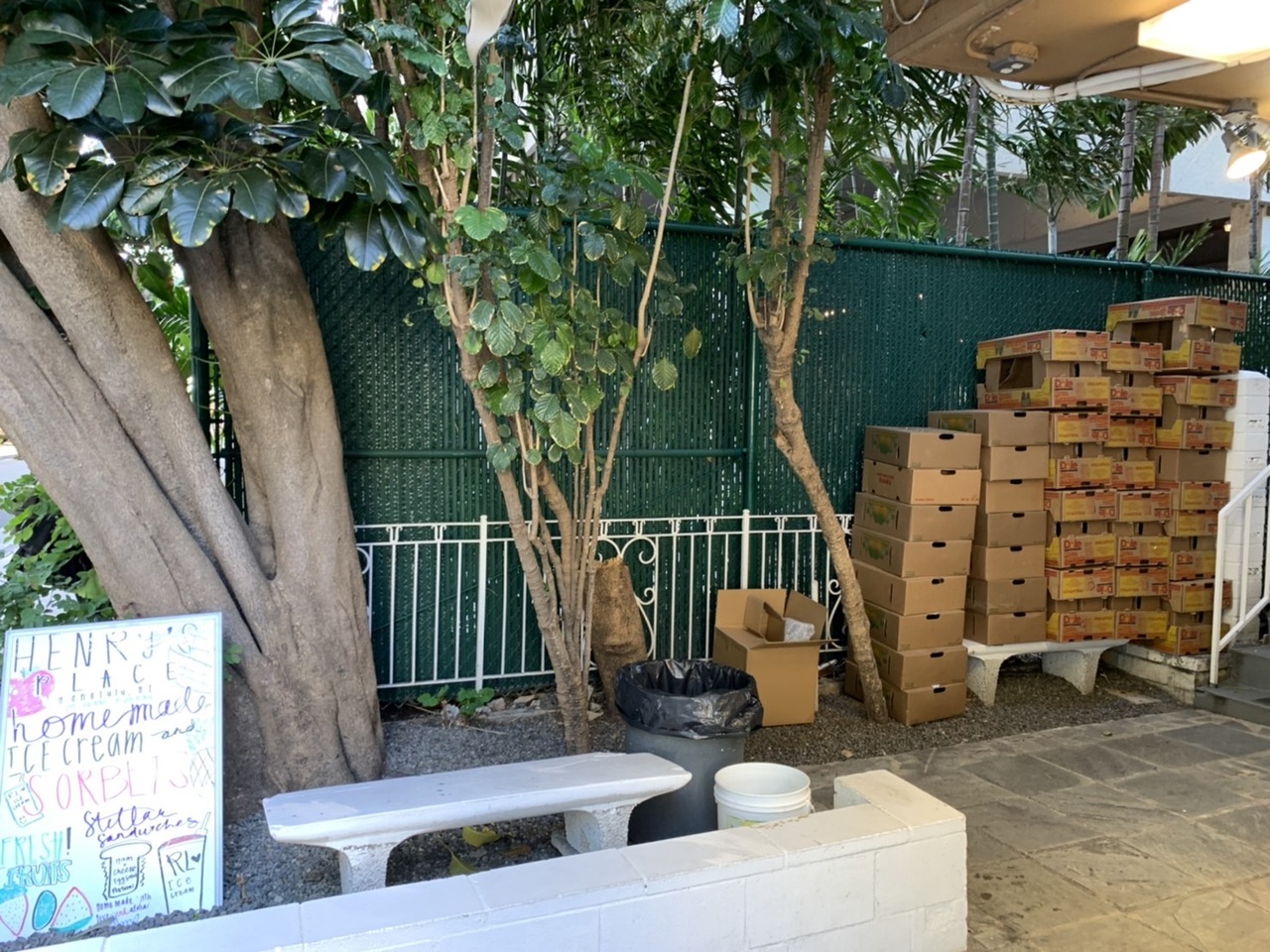 バンクオブハワイ横を入って真っ直ぐ歩くとあります。