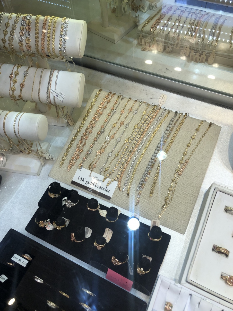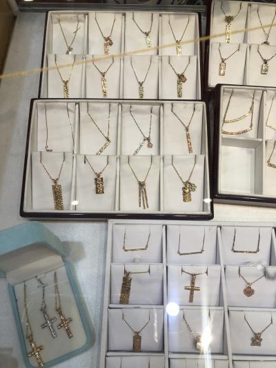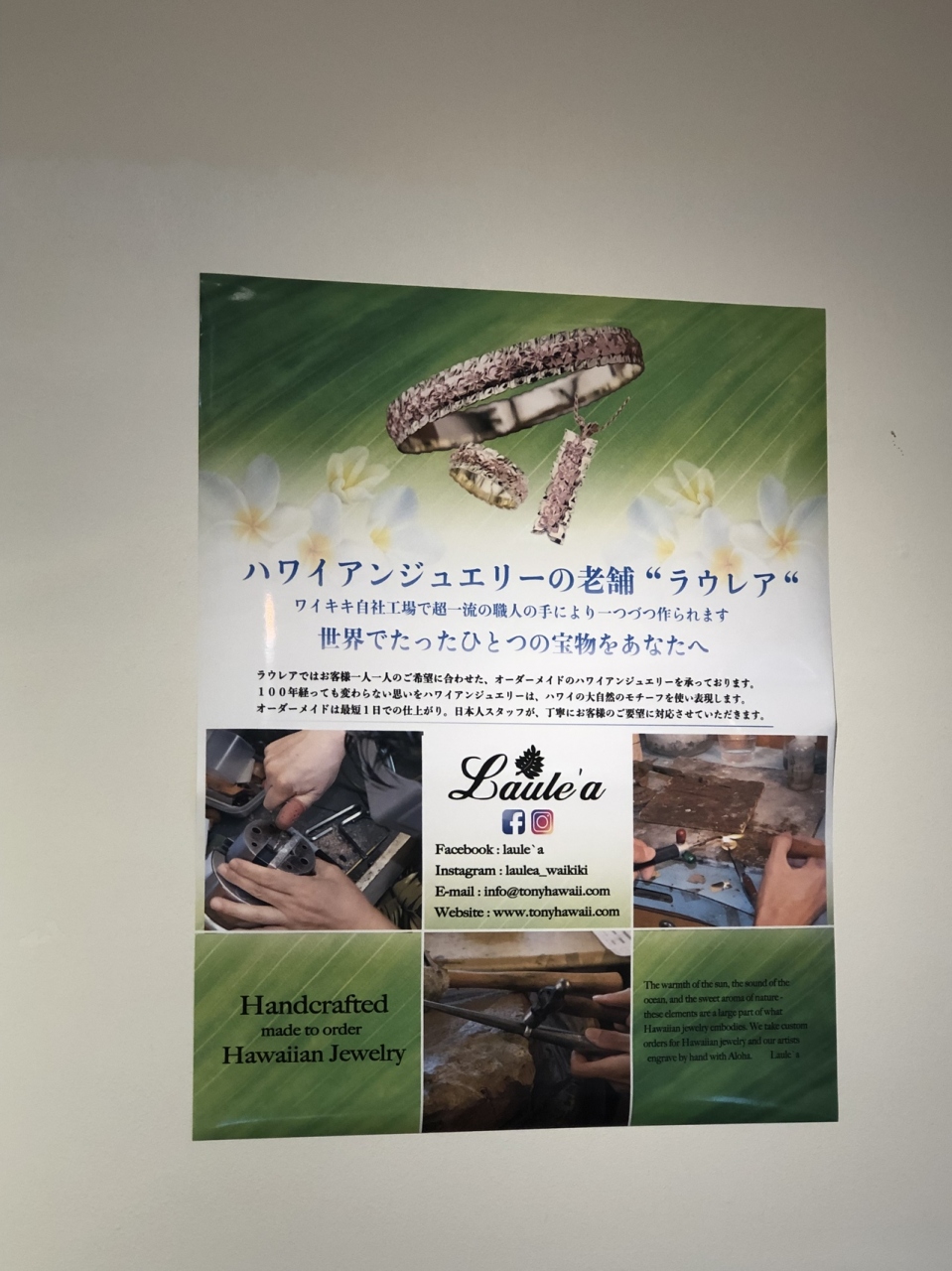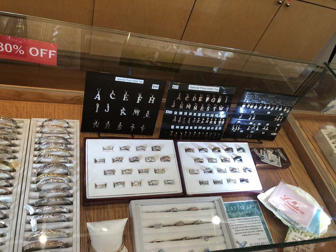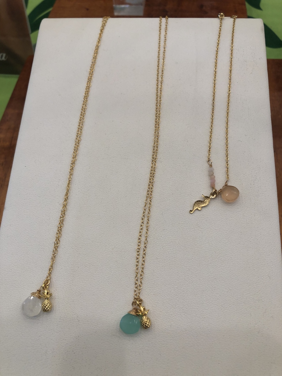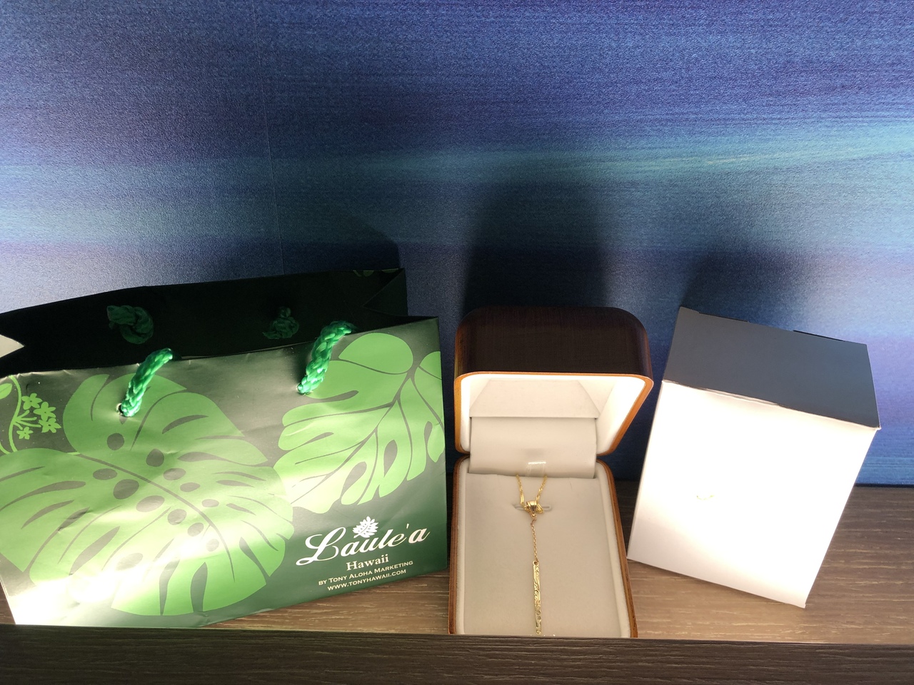 パイナップルとブルーの石のネックレスを買いたいと思って行きましたが、ハワイアンジュエリーネックレスを試着?してみたら、上品な輝きに惚れてしまいそちらを購入。6万円弱でした。